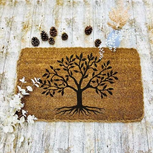 Hand-printed for timeless elegance, this durable standard-sized coir mat brings both function and style to your doorstep. Crafted from natural coconut husk fibres, it traps dirt and moisture to help keep your floors clean and welcomes guests with a meaningful Tree of Life design. The fade-resistant finish ensures lasting beauty, while its tough construction stands up to high-traffic areas with ease.